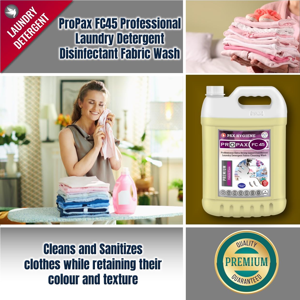 • ProPax FC45 is suitable for washing of regular clothes and effective in cleaning and sanitizing hospital laundry.
