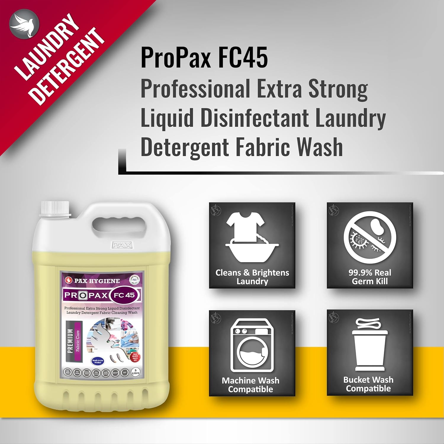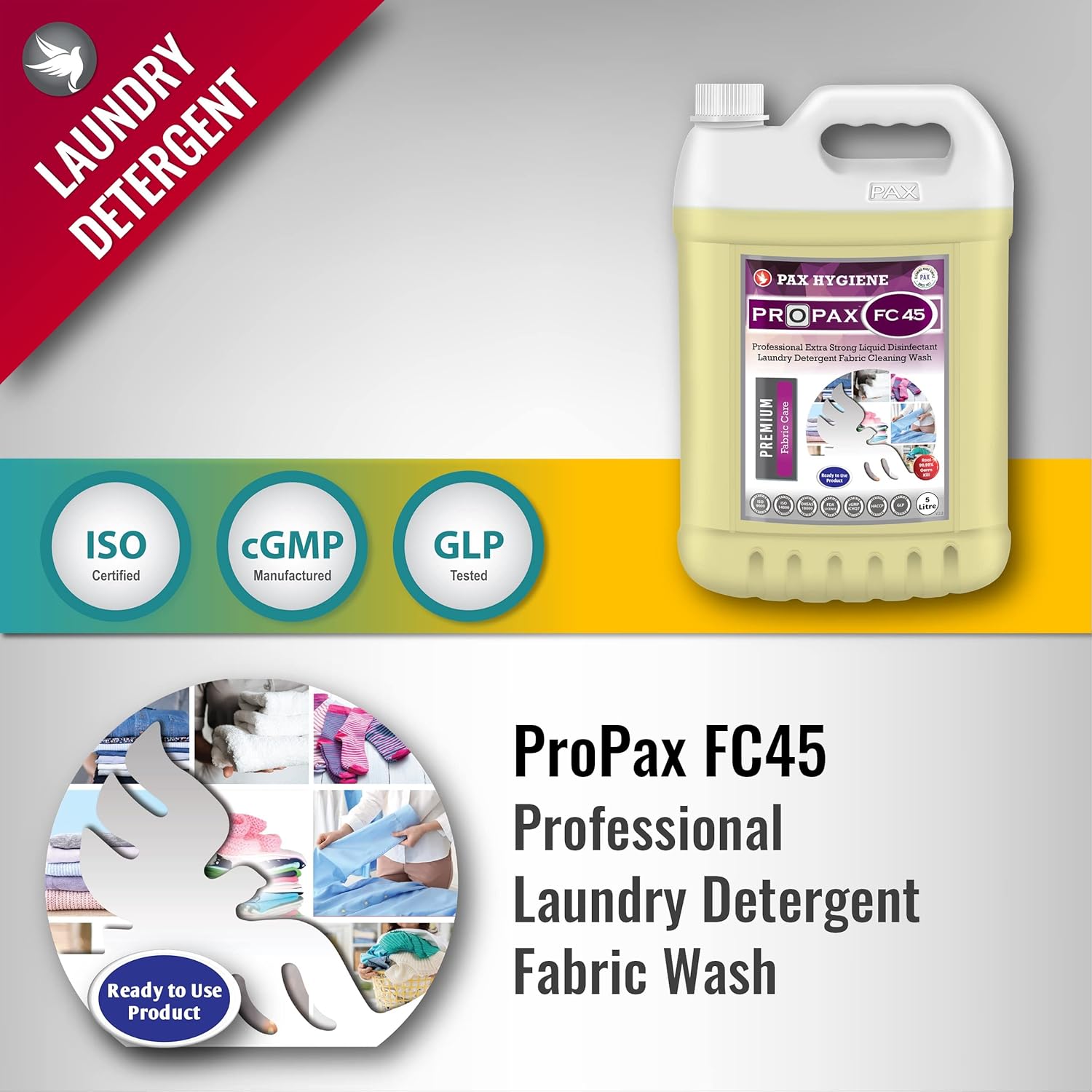 • ProPax FC45 is specially formulated, superior quality, liquid detergent for washing machine and bucket wash.